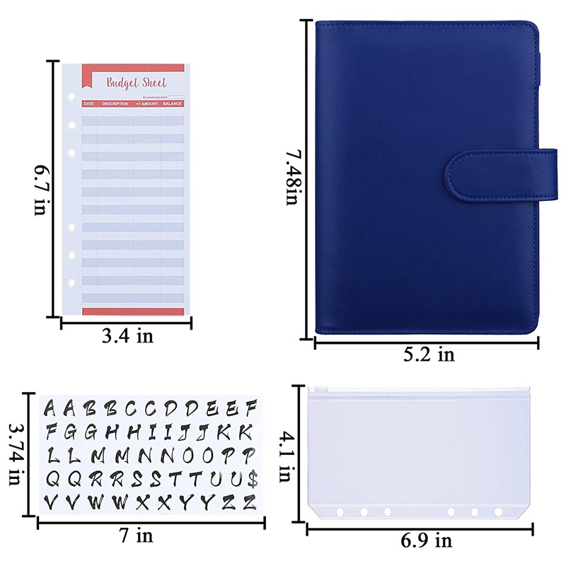 [Durable and Reliable Material] The notebook binder cover is made of quality PU leather, waterproof and durable. The zipper binder pockets and card bag are made from PVC material, it can protect your bills safely. There are 6 metal binder rings, allowing you to add or remove planner sheets flexibly. [Portable to Carry] Suitable in size and light in weight, it is suitable for your handbag, backpack, suitcase or desk, they are all 6- holes design, can be filled into A6 6-ring binders. Value package to meet your daily needs. [Easy to use] You just need to press the 2 ends of the switch to open the loose leaf ring of the binder cover, then press the ring to close it after installation. The binder pockets perfect for storing cashes, coins, bills, tickets, receipts, cards, stamps and other small parts. [Nice Budget Binder] This 6-ring binder has many hidden compartments and pen hoops for easy storage of cards, cash, coupons, stamps, tickets, pens, and more. Budget stickers and expense budget sheets help you keep track of your cash spending with ease, spend well, stay out of debt, start saving, set and achieve financial goals.
