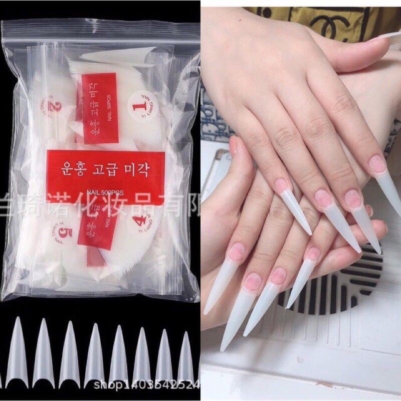 Tất cả hàng đều giống hình 100% và chất lượng .. Móng Nối Nhọn Dài bịch đủ số 500 móng Móng Nối Nhọn Dài nối tay chuyên dụng làm Nail Móng tip tre , móng tip ống tre