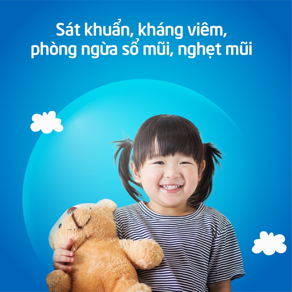 CÔNG DỤNG: Dùng để vệ sinh mũi hàng ngày cho trẻ em, giúp thông thoáng dễ thở và tạo cảm giác mát dịu Loại bỏ gỉ mũi, chất nhầy nhờ cơ chế xịt phun sương , ngăn ngừa sổ mũi, nghẹt mũi và viêm mũi, viêm xoang.