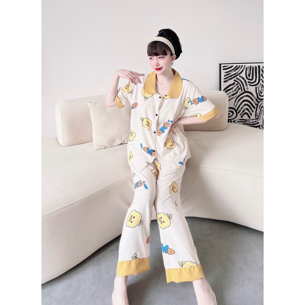 Giới thiệu [ Bigsize 50-100kg ] Đồ Bộ Dài Tiểu Thư Bèo Nhún Lụa Satin - Lụa Nhật Cổ Sen Hai Lá