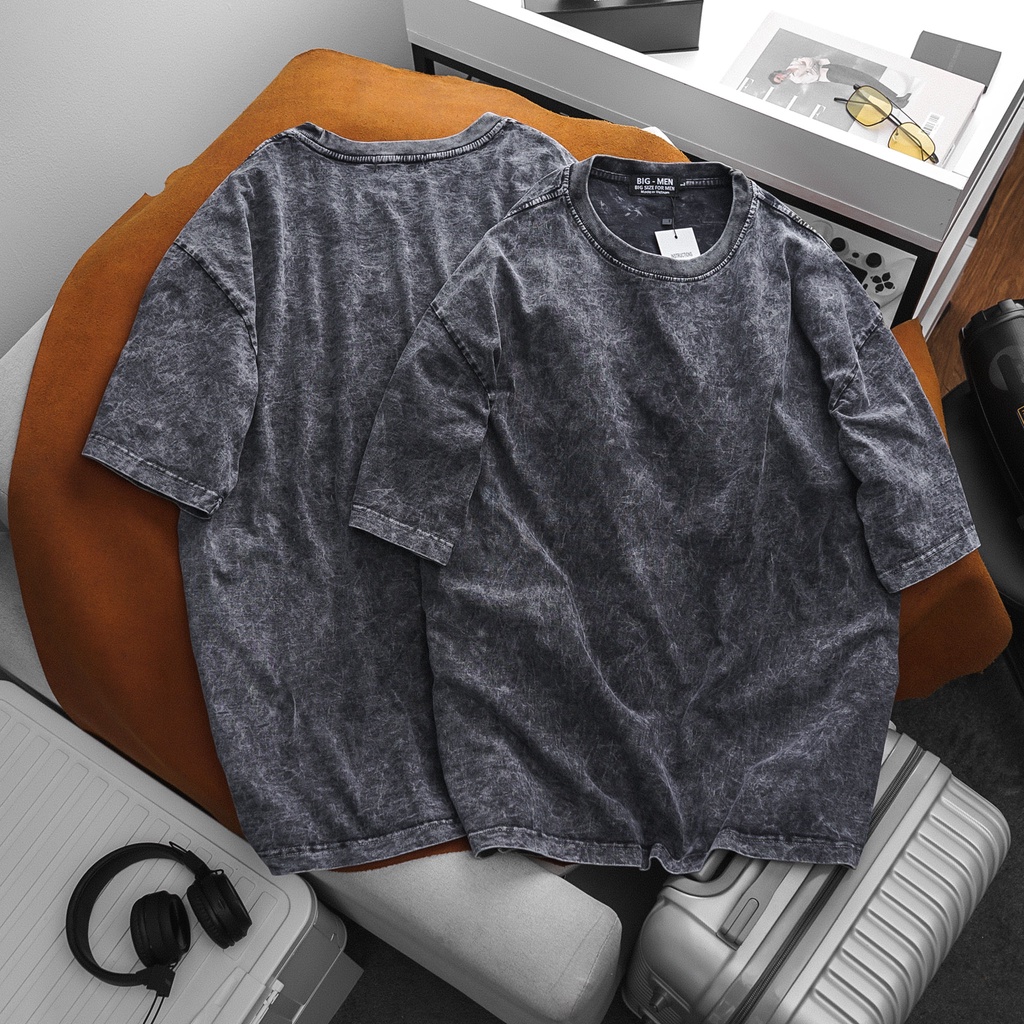 Thời Trang Nam > Áo > Áo Thun > BIGSIZE - Áo thun nam tay ngắn cotton wash xi măng bigsize 65kg - 135kg - Trơn