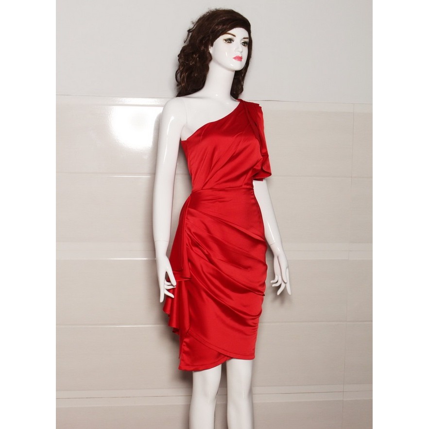 Giới thiệu [Có bigsize] Đầm lụa dự tiệc lệch vai dún eo cao cấp *hình shop chụp