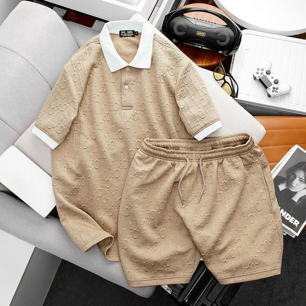 Giới thiệu [bigsize] Set bộ polo dập nổi thời trang màu nâu nhạt bigsize nam < 140kg