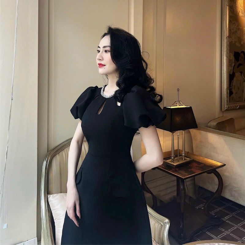 Giới thiệu BIGSIZETIX Đầm dự tiệc tay phồng cổ tròn thiết kế giọt nước viền cườm sang chảnh 50-90kg