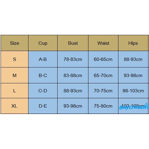 Chào mừng đến với cửa hàng của chúng tôi! Chi tiết sản phẩm: Chất liệu: Polyester Màu sắc: Xanh lá, Cam, Vàng, Trắng, Đỏ rượu, Hồng, Xanh dương, Đen (như trong hình) Size: S, M, L Size Cúp ngực Ngực áo Eo Hông S A-B 78-83cm 60-65cm 88-93cm M B-C 83-88cm 65-70cm 93-98cm L C-D 88-93cm 70-75cm 98-103cm XL D-E 93-98cm 75-80cm 103-108cm Gói hàng bao gồm: 1 x Bộ bikini gợi cảm dành cho bạn nữ