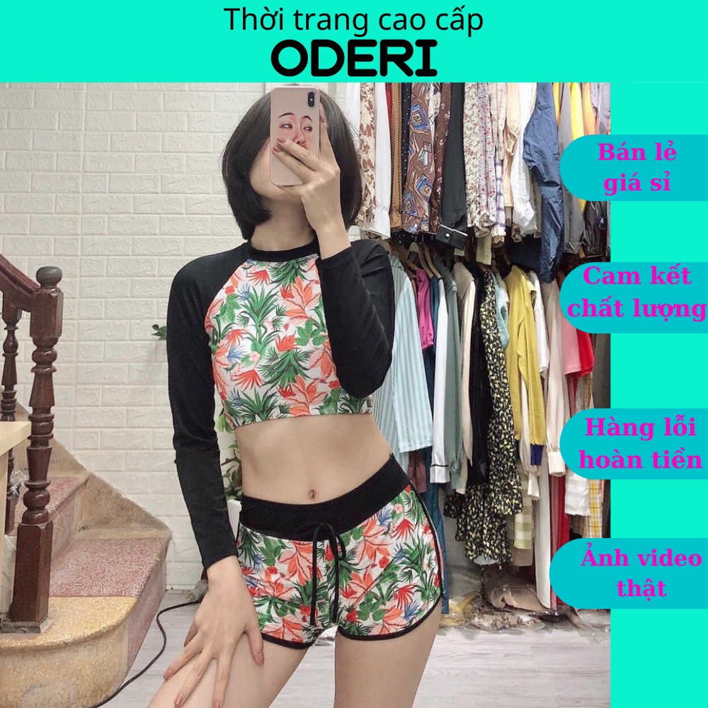 Giới thiệu Bikini, Đồ Bơi Đi Biển Hai Mảnh Tay Dài Lá Cam Quần Đùi ODERI HM-053