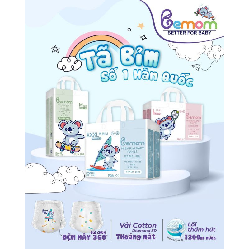 Với những tính năng ưu việt vượt trội, tã bỉm BEMOM Hàn Quốc hứa hẹn sẽ tạo nên CƠN SỐT BỈM MỎNG, THẤM HÚT SIÊU ĐỈNH trong những tháng cuối năm 2022 nhé các mom. - Chỉ từ 5,5k/miếng, bỉm Bemom Hàn Quốc đáp ứng đầy đủ các tiêu chí NGON - BỔ - RẺ - AN TOÀN TUYỆT ĐỐI khi các mẹ lựa chọn 1 loại tã cho con