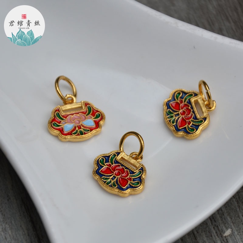 Phụ Kiện & Trang Sức Nữ > Phụ kiện thêm > Mặt dây chuyền và Charm > Bingyingge Mặt Dây Chuyền Bằng Đồng Nguyên Chất Mạ Vàng Kim Nguyên Chất Hình Ổ Khóa Ruyi Màu Xanh Lam Cháy Làm Trang