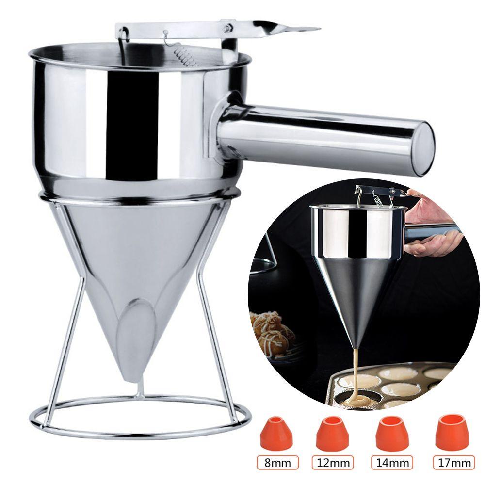 Kích thước và trọng lượng được đo thủ công . Một số lỗi là bình thường . Làm ơn hãy hiểu . Máy phân phối bột bánh kếp Máy phân phối bánh phễu bằng thép không gỉ nhiều cỡ có chân đế Tuyệt vời cho bánh kếp Bánh nướng nhỏ Bất kỳ đồ nướng nào Nhà bếp