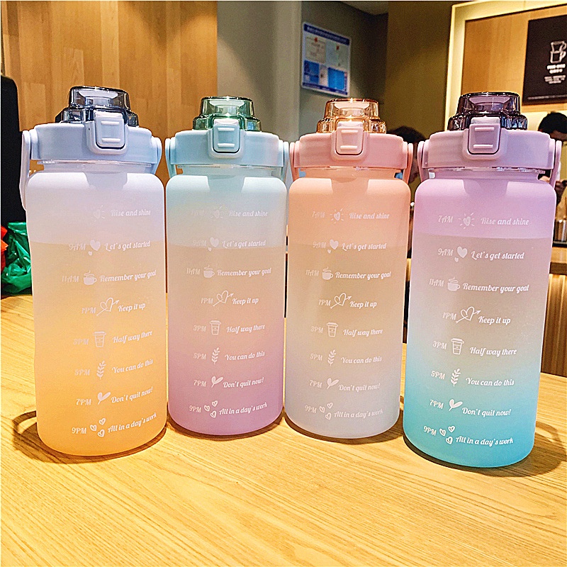 ✅ Bình đựng nước 2 lít dung tích bình có thể lên đến tận 2L nước!!! Em đảm bảo mọi người không đầu tư thừa đâu vì việc uống nhiều nước mỗi ngày rất cần thiết cho chúng ta ✅ Thiết kế bình đơn giản với các tông màu dễ thương, có phần thân trong suốt nhìn đẹp mắt, có in từng vạch dung tích bình. ✅ Bình có thiết kế chia giờ uống nước nhắc nhở mỗi khi cần uống nước ✅ Có ống hút đàn hồi ✅ Có nắp bấm bật mở tiện lợi, nắp chống tràn nước. ✅ Có thể sử dụng khi mang đi tập gym-yoga, mang đi học, mang đến nơi làm việc một cách dễ dàng. ✅ Ngoài đựng nước lọc ra, còn dùng để làm bình đựng detox giảm cân đẹp da cũng rất phù hợp