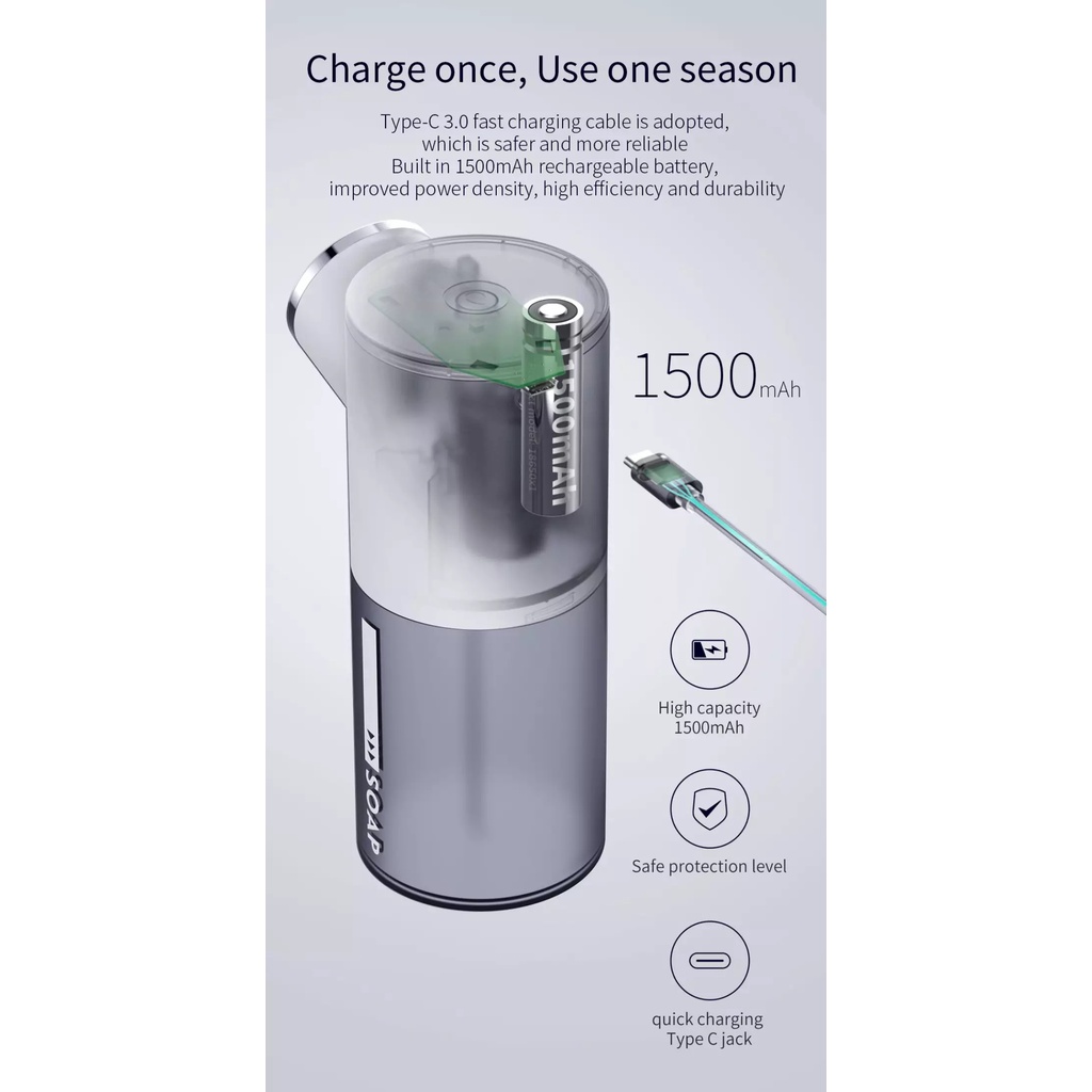 Bình đựng xà phòng tự động Tự động tạo bọt,không chạm,an toàn và tiện lợi Tạo bọt nhanh Hiển thị dung lượng nhiệt độ/pin Xà phòng có thể thay thế