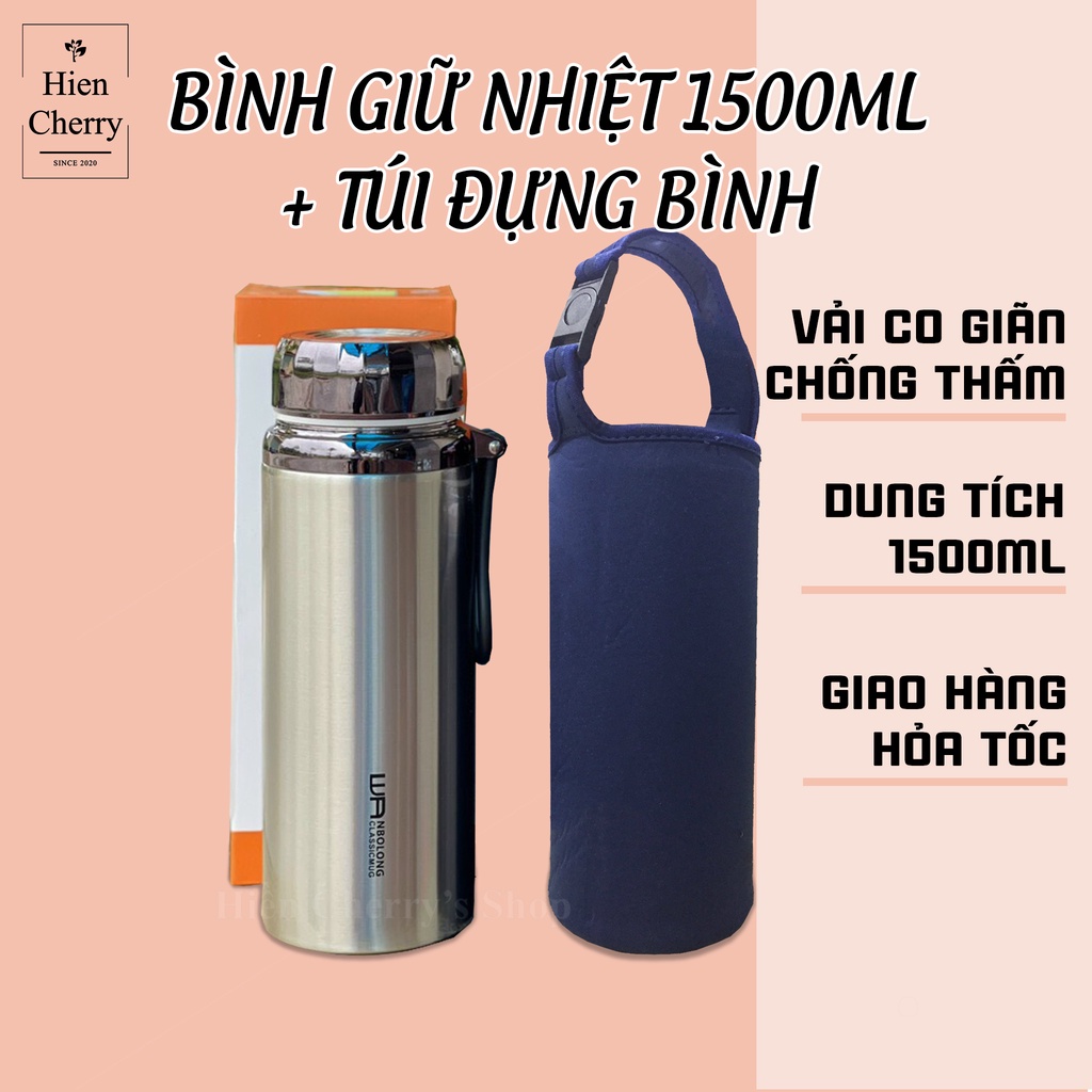 COMBO Bình giữ nhiệt 1500ml kèm túi đựng, bình giữ nhiệt kim cương chính hãng BAOL + Túi đựng bình giữ nhiệt