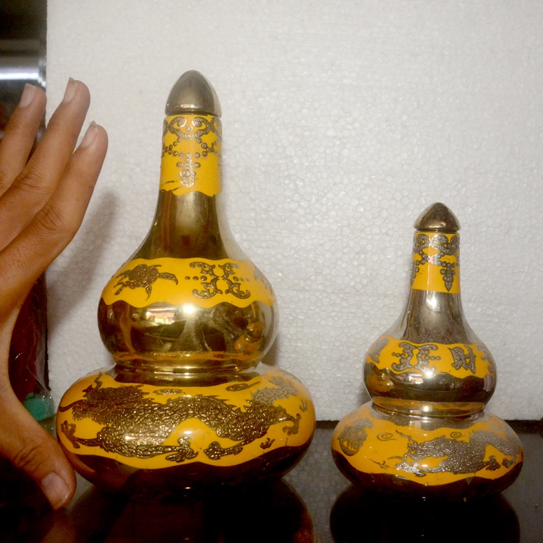 Bình Hồ lô thờ cúng rồng vàng 3D Kích thước Cao 22cm ngang đáy 12cm Cao 14cm ngang đáy 9cm Chất liệu gốm sứ rất đẹp,màu được sơn kỹ,đặc biệt không phai màu,hình rồng in 3D tạo nên cảm giác uy nghiêm,trang trọng. Những hình ảnh sản phẩm của shop đăng trên website đều là shop tự chụp sản phẩm thực tế,màu sắc có thể đậm nhạt hơn do ánh sáng khi chụp,màn hình máy tính,điện thoại vv.... Ngoài ra,shop còn rất nhiều các sản phẩm,văn hóa phẩm Phật giáo,đồ thờ cúng,quà lưu niệm........mời quý khách ghé thăm gian hàng tham khảo thêm Từ xưa đến nay, gốm sứ luôn là vật liệu được ưa chuộng trong việc chế tác các sản phẩm nội thất, đồ thờ hay sử dụng để đúc Đồ Thờ Cả Bộ. Đối với Đồ Thờ Nguyên Bộ bằng sứ hoặc đồ thờ bằng sứ thì luôn toát lên vẻ đẹp và trang nghiêm. Cũng bởi do sự mong manh dễ vỡ của chất liệu sứ nên tâm người khi sử dụng các đồ tâm linh từ sứ đều vô cùng cẩn trọng và chú ý. Nếu có tìm hiểu, bạn sẽ thấy những pho Bộ Thờ bằng sứ, các đồ thờ bằng gốm sứ được trải qua các công đoạn sản xuất rất kỳ công. Sản phẩm mà chúng ta thấy đẹp như vậy phải trải qua các nét nẽ rát tỉ mỉ của các nghệ nhân. Tuy nhiên, trước khi vẽ, phải có sản phẩm thô, mà sản phẩm thô này lại được nung từ đất sét dưới nhiệt độ hàng nghìn độ C qua thời gian dài. Hiểu được cả một quá trình như vậy, chúng ta sẽ trân trọng các sản phẩm này hơn. Nếu bạn muốn thỉnh Bộ đồ thờ đồng bộ hay các đồ thờ đẹp, trang nghiêm mà không có điều kiện kinh tế nhiều thì các sản phẩm bằng gốm sứ chính là một trong những lựa chọn hợp lý cho bạn. Các sản phẩm sản xuất ra hiện nay đều rất bền, đẹp mà giá cũng hợp lý do chi phí sản xuất ngày càng giảm. Bộ thờ cúng rồng vàng 3D là sự lựa chọn phù hợp cho gian thờ nhà bạn.
