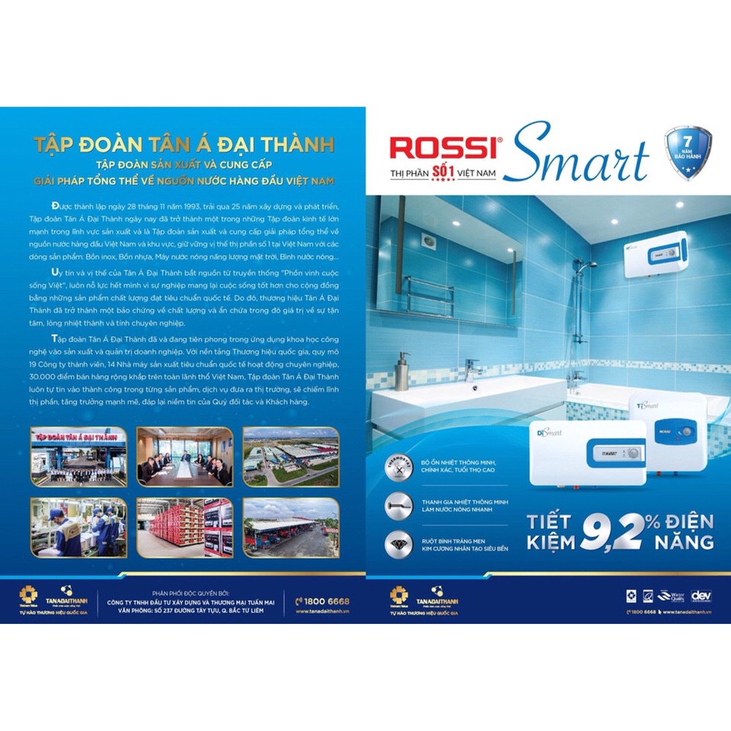 Giới thiệu Bình nóng Lạnh Rossi 30 Lít Ti30 Smart vuông