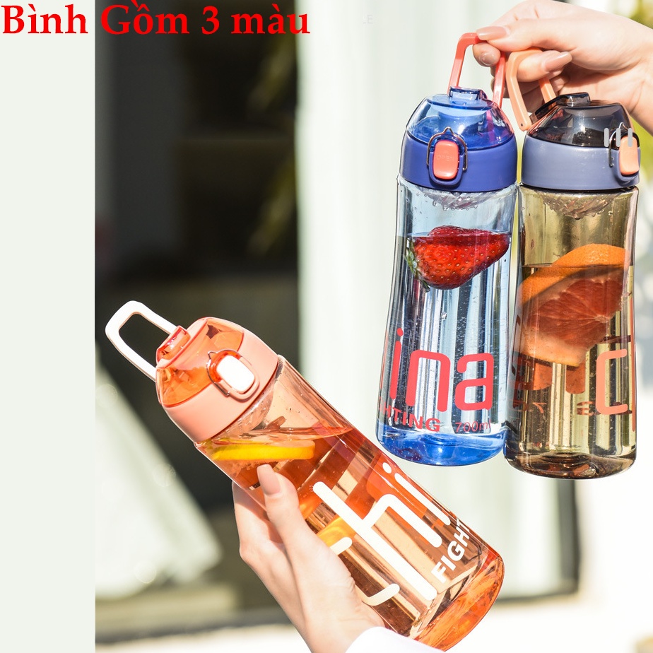 Bình Đựng Nước Nhựa Thể Thao Đẹp Cute Dễ Thương 700ml BN23 Đặc trưng: Chất liệu: Nhựa, Silicon , Cao su Dung tích sản phẩm: 700ml Màu sắc : Màu xanh - Màu Cam - Màu Đen Kích Thước : Kiểu họa tiết: Thể Thao