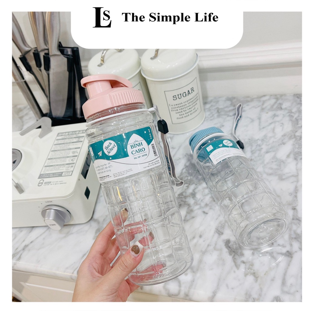 Bình nước caro học sinh, bình đựng nước caro trong suốt dung tích 750ml thể thao có quai dù xách tiện lợi [CHÍNH HÃNG]