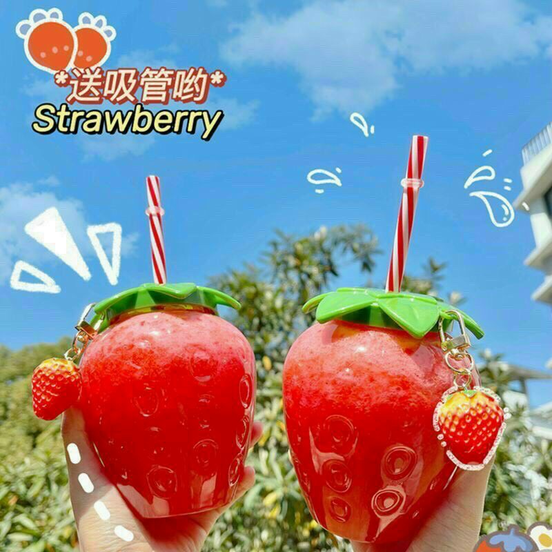 Bình đựng nước quả dâu tây kèm ống hút và móc khoá #binhdungnuoc #dautay #binhnuoc