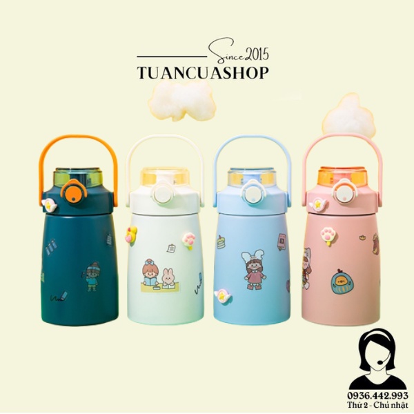 Nhà Cửa & Đời Sống > Dụng cụ pha chế > Bình nước và phụ kiện > Bình nước giữ nhiệt - Bình giữ nhiệt 800ml nhiều màu dễ thương tặng kèm ống hút và sticker trang trí