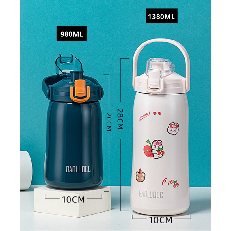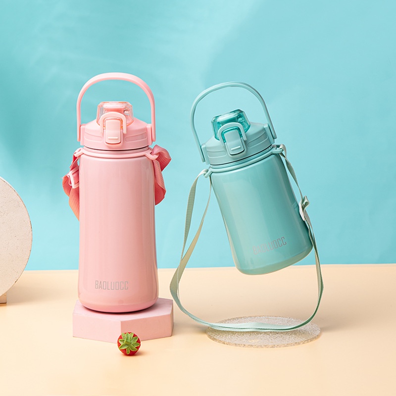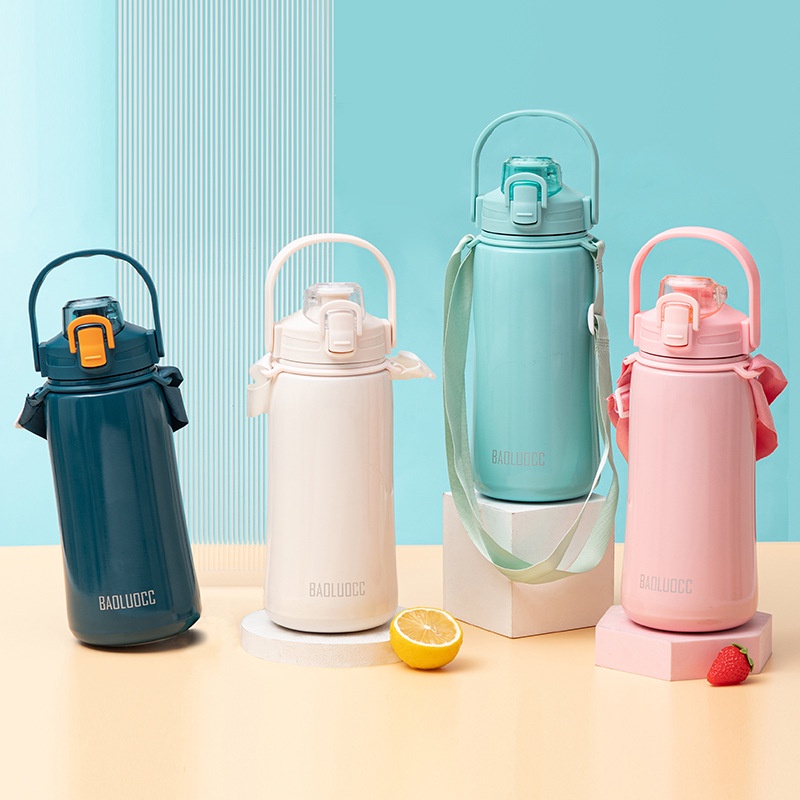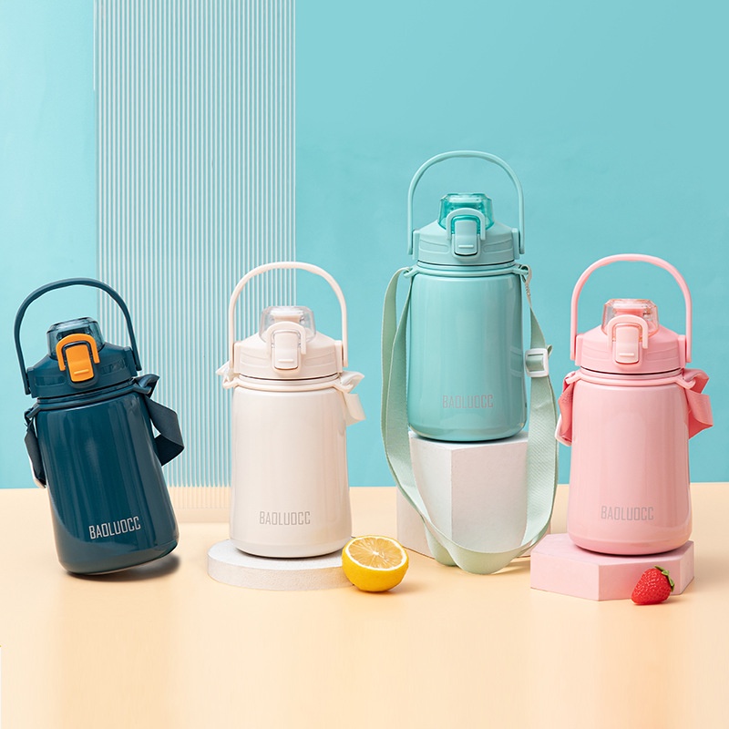 Giới thiệu Bình Nước Giữ Nhiệt Hai Lớp Bằng Thép Không Gỉ Dung Tích 980ml/1380ml Kèm Dây Đeo Kiểu Dáng Thời Trang