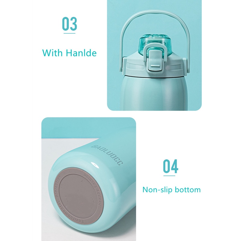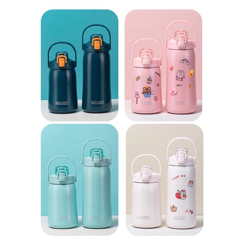 Được làm bằng thép không gỉ kép, nắp nhựa cấp thực phẩm. Giữ ấm / lạnh trong 8-12 giờ. Tay cầm và dây đeo di động, Có miếng dán, Có Rơm, Chống rò rỉ, Không chứa BPA. Dung tích: 980ml, 1380ml. Kích thước: 20 * 10cm, 28 * 10cm. Màu: Xanh dương, Xanh lá, Hồng, Trắng.