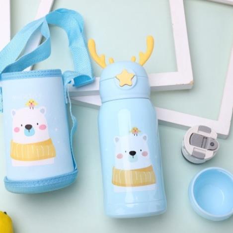 Giới thiệu Bình Nước Giữ Nhiệt Inox Cao Cấp Hình Hươu Cute Cho Bé Có Ống Hút