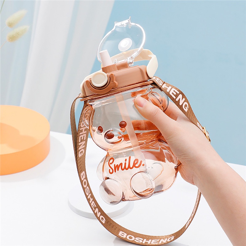 Giới thiệu Bình Nước Nhựa Có Ống Hút Hình Gấu Dễ Thương 1000ml-1400ml JP6