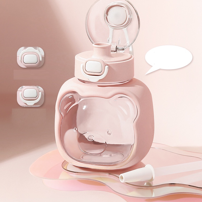Giới thiệu Bình Nước Thể Thao Dung Tích 1000ml Có Ống Hút Họa Tiết Gấu Hoạt Hình Dễ Thương