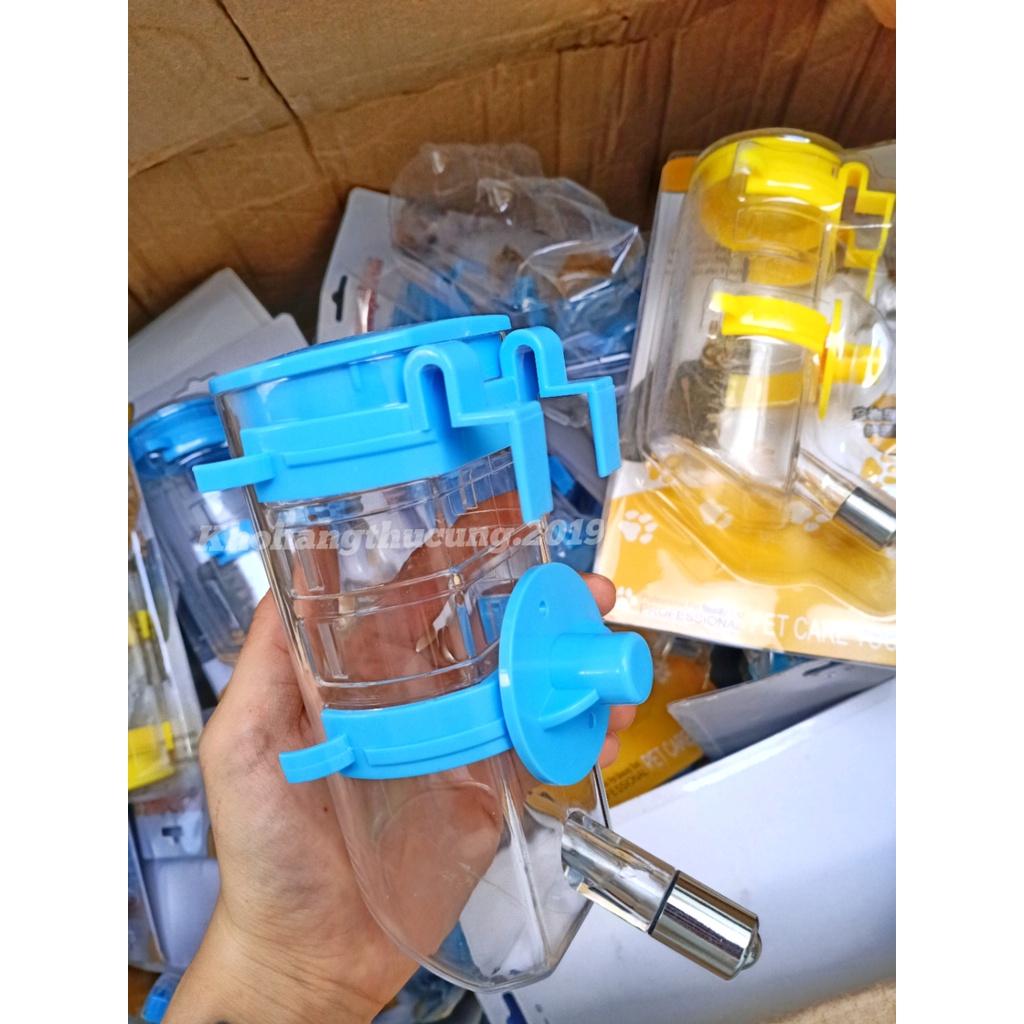 - Bình uống nước gắn chuồng- dung tích chứa 350ml và 500ml - Bình cấp nước tự động cho chó mèo - Bình nước treo chuồng có kiểu dáng hiện đại được thiết kế tinh tế, phù hợp để treo lên thành chuồng, giúp tiết kiệm diện tích, tiện lợi cho việc sinh hoạt trong ăn uống của cho mèo. - Bình được làm từ chất liệu nhựa cấp, không độc hại, bền và cho sức khỏe của thú cưng. - Phần vòi nước được làm từ inox, chống rỉ sét, sức khỏe cho chó. - Bên trong phần vòi nước có viên bi, khi thú cưng liếm vào, viên bi sẽ bị đẩy lên và nước sẽ chạy xuống. - Bình có nhiều màu sặc nổi bật bắt mắt.