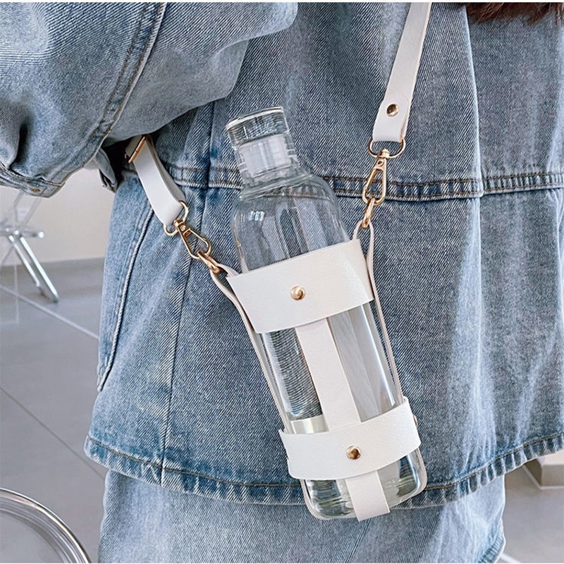 Giới thiệu Bình Nước Trong Suốt Đơn Giản Kèm Vỏ Da Đựng Chai Nước Tiện Dụng Mang Theo Du Lịch Dã Ngoại