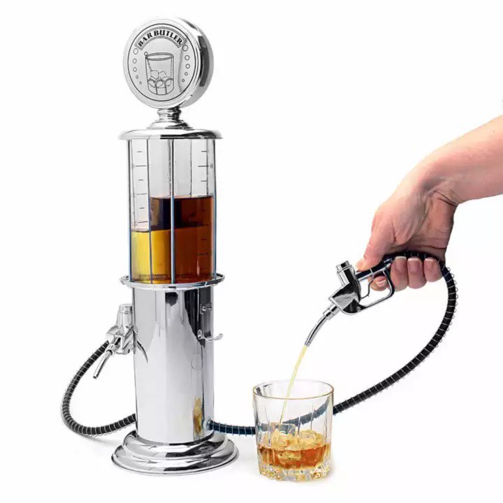 Sản phẩm là một bình rượu có sức chứa khoảng 1 lít, mô phỏng một máy bơm xăng ở trạm xăng. Bạn chỉ cần rót bia vào bình rượu này, và rót ra từng ly bằng một...vòi xăng thu nhỏ. Một trò chơi khá thú vị dành cho cả nhóm đây bạn, một phong cách mới trên bàn nhậu, giúp tạo cảm hứng mới và gần gũi nhau hơn. Đặc biệt, trò chơi này sẽ càng vui hơn nếu tổ chức đi cắm trại, picnic... Bình rót độc đáo này có thiết kế giống như một cây bơm xăng tự động. Bạn có thể sử dụng bình rót rượu cây xăng này để chứa rượu, bia, các loại cocktail mạnh hoặc nước hoa quả nguyên chất để uống. Như một đồ vật trang trí thật đẹp trong phòng khách, chiếc bình rót đặc biệt sẽ khiến khách khứa và bạn bè của bạn thật ngạc nhiên về bữa tiệc nhẹ tất niên hay liên hoan. Kích thước: cao 49 x ngang 9 (cm). Có sức chứa khoảng 1 lít.