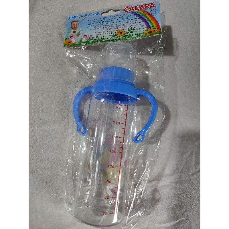 Thông tin chi tiết sản phẩm 🌺 Bình uống sữa 2 tay cầm cara 🌺 Dung tích: 250ml 🌺Có thể thay thế là bình uống nước 🌺 Bình sữa tay cầm có ống hút tự động, núm silicone . Bé có thể hút cạn sữa mà không cần cầm dốc ngược bình 🌺Vừa sử dụng là bình sữa hoặc bình cho bé tập uống 🌺 Chất liệu : nhựa Polycarbonate ( PC ), hàng Việt Nam 🌺 Bình sữa có tay cầm ngộ nghĩnh thuận tiện cho việc cầm bình bằng 2 tay bé uống nước uống sữa dễ dàng 🌺Vạch phân ml trên thân bình rõ ràng giúp bạn dễ dàng kiểm soát được lượng nước, sữa bé uống