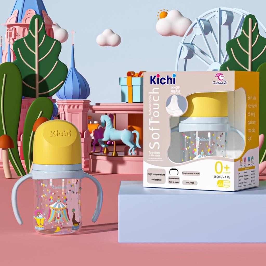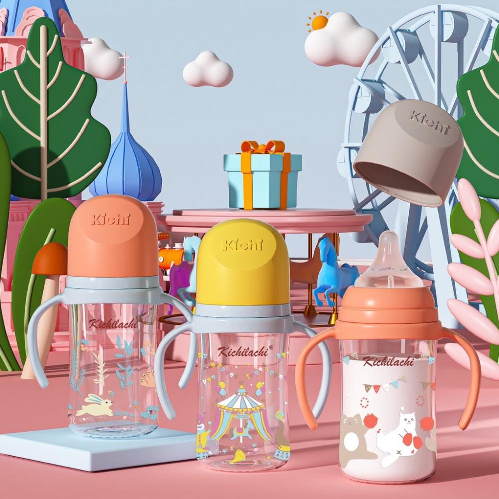 Giới thiệu Bình Sữa Cổ Rộng Kichilachi PP Thế Hệ Thứ III, Núm Ti Siêu Mềm Chống Sặc,Đầy Hơi Cho Bé 160ml/240ml/300ml [ KÈM NÚM TI ]