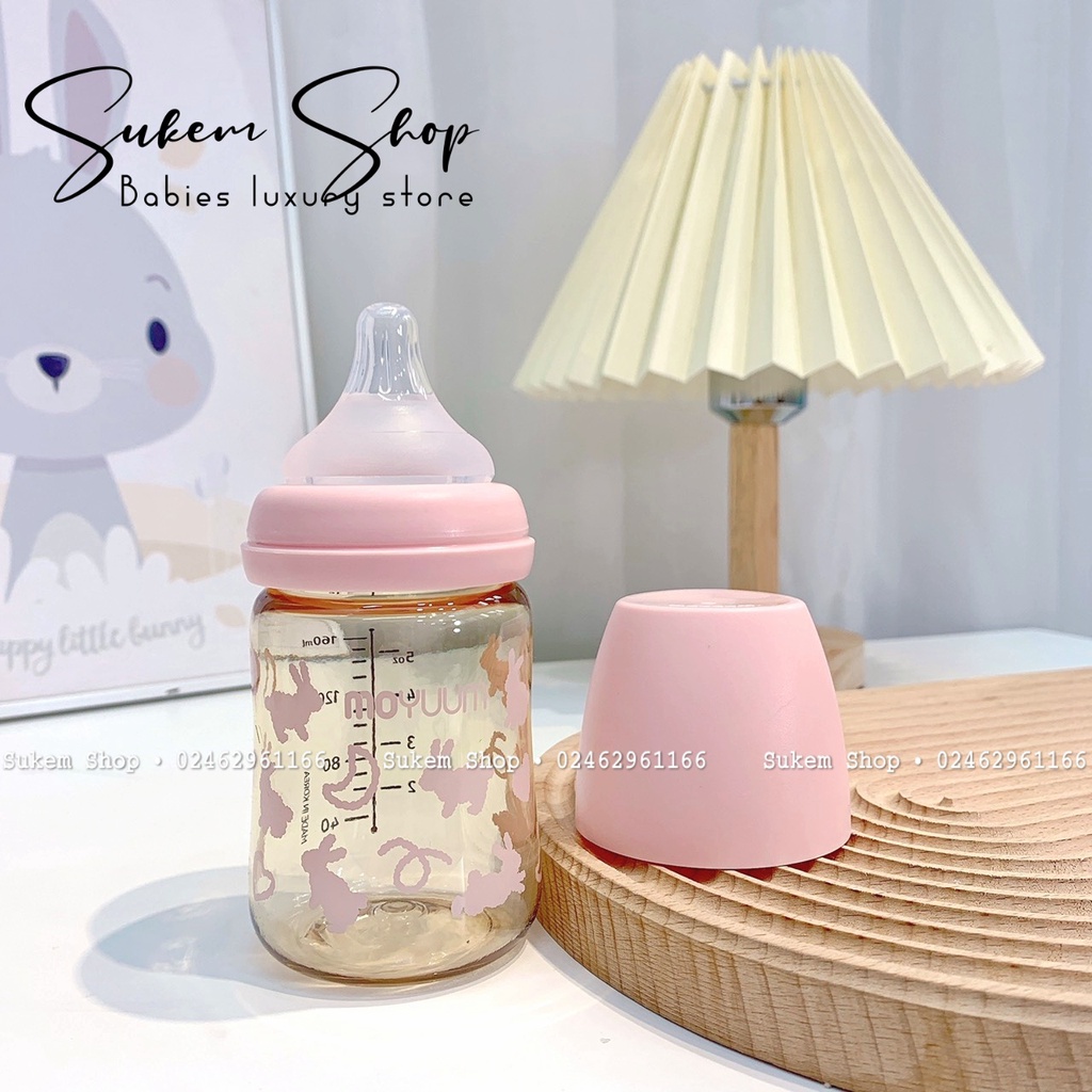 Bình sữa Moyuum Họa tiết Thỏ 170ml/270ml Năm 2023 bên Hàn nên nhà Moyuum cho ra mắt sản phẩm bình sữa thỏ xinh xuất sắc luôn 🐇 ◽️ Moyuum là thương hiệu bình sữa Hàn Quốc quá nổi tiếng và được ưa chuộng nhất tại Việt Nam: ◽️ Núm ti siêu mềm như ti mẹ, phù hợp cho cả bé sơ sinh tập ti bình lần đầu, được xem là bình thần thánh tập ti cho bé. ◽️ Thiết kế với van lưu thông khí thông minh, ngăn ngừa không khí bên ngoài tràn vào bình sữa tránh tình trạng ọc vì đầy hơi ở bé. ◽️ Thiết kế siêu siêu xinh, cầm gọn tay kể cả size 170 ml lẫn size 270 ml, các góc bình sữa rộng để dễ chùi rửa, cầm nắm. ◽️ Chất liệu nhựa PPSU tiên tiến nhất, chịu được lến đến 200 độ C, đảm bảo an toàn tuyệt đối cho bé