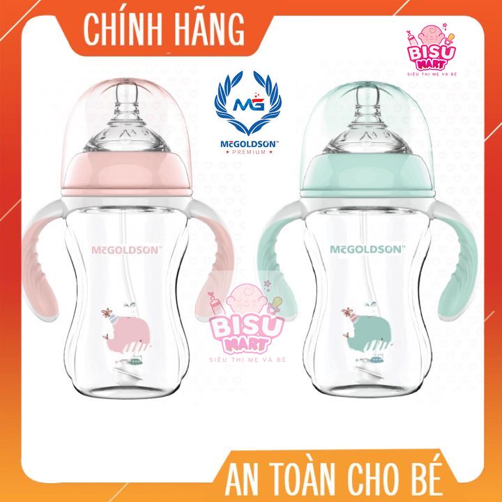 Bình sữa Mcgoldson cổ rộng thiết kế ống hút kèm theo dễ dàng cho bé bú nằm hoặc ngồi đều được, thuận tiện cho bé đi chơi hay ngồi trên xe dều bú rất dễ dàng ( ống hút k sử dụng có thể tháo ra và vệ sinh rất dễ dàng, mỗi bình đều có kèm 1 cây cọ rữa ống hút)