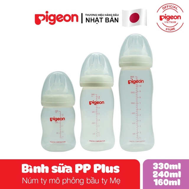 Giới thiệu Bình sữa PP Plus Pigeon 160ml/240ml/330ml chính hãng