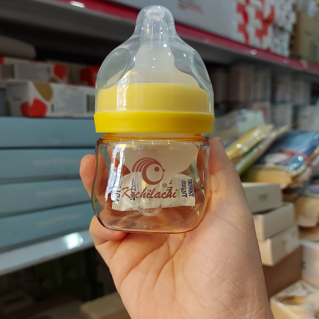 BÌNH SỮA SƠ SINH CỔ RỘNG PPSU KICHILACHI 90ML NÚM TI SILICONE SIÊU MỀM CHỐNG SẶC VÀ ĐẦY HƠI CHO BÉ