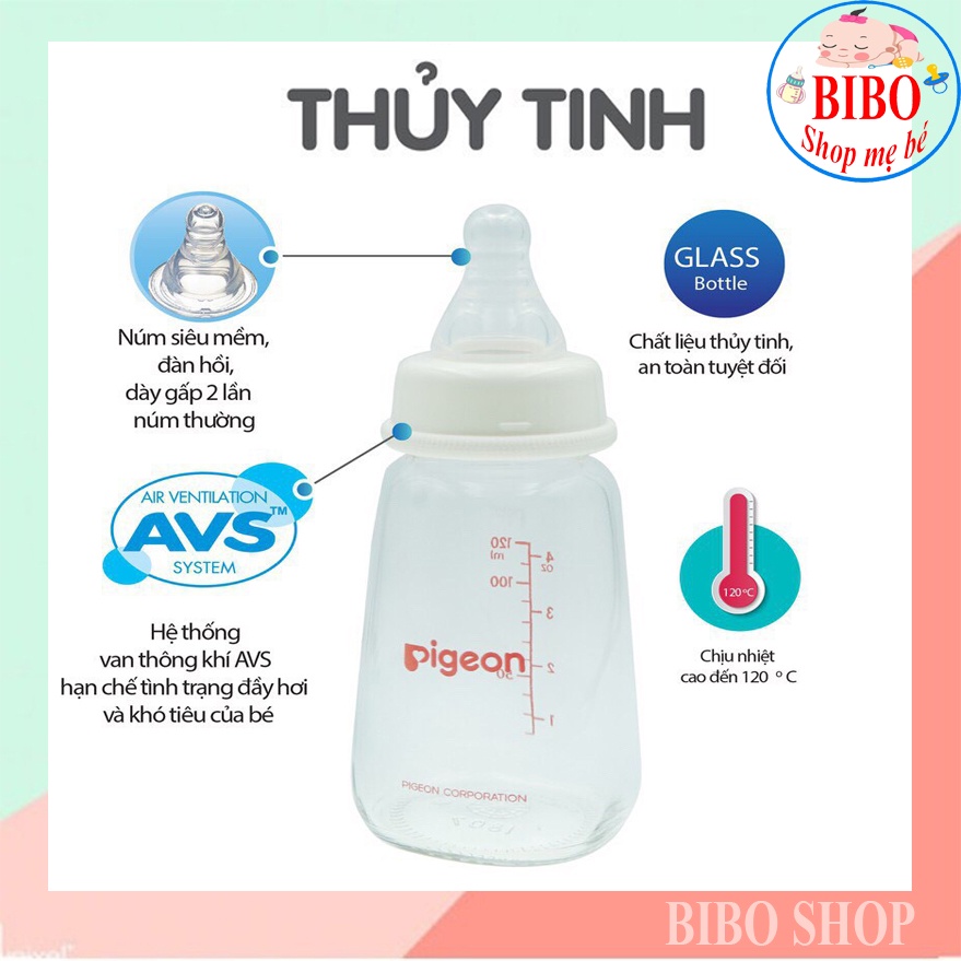 Bình sữa thủy tinh cổ hẹp Pigeon 120ml/ 240ml