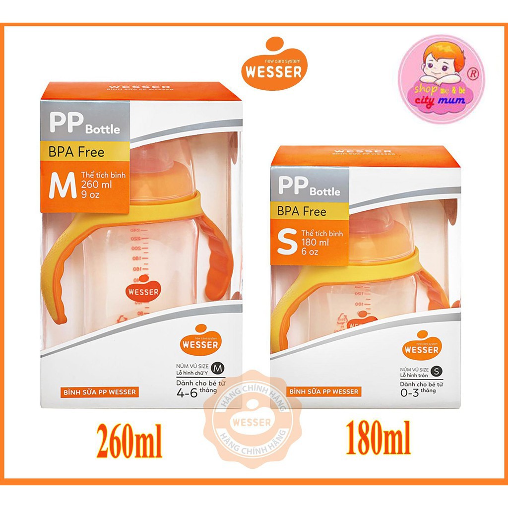 Giới thiệu BÌNH SỮA WESSER CỔ RỘNG 180ML/260ML NHỰA PP BPA FREE