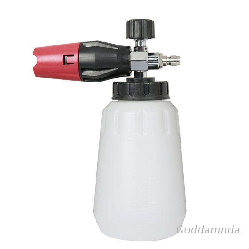 Chi tiết sản phẩm: Chi tiết sản phẩm: Bình tạo bọt tuyết rửa xe hơi áp suất cao với đầu nối nhanh 1/4 Dung tích: 1000mL Màu sắc: Đen + Đỏ + Trắng Chất liệu: Nhựa kỹ thuật + thép không gỉ Kích thước: Như hình ảnh hiển thị