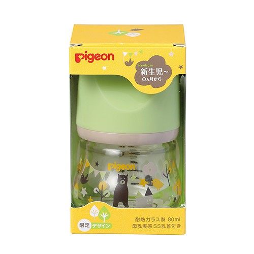Bình thủy tinh cổ rộng Pigeon xanh lá 80ml - Hàng nội địa Nhật