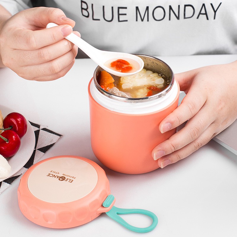 Nhà Cửa & Đời Sống > Đồ dùng nhà bếp và hộp đựng thực phẩm > Hộp, túi đựng thực phẩm > Bình Ủ Cháo ELEGANCE Giữ Nhiệt dung tích 430ml Tặng Kèm Thìa Màu Hồng Pastel Cao Cấp Lõi Inox 304 Không Gỉ