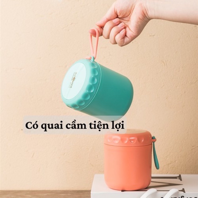 Bình Ủ CháoTẶNG KÈM THÌA Hộp Đựng Canh Giữ Nhiệt Cao Cấp Lõi Inox 304 Không Gỉ Có Nắp Vặn Chống Tràn Quai Cầm 430 ML