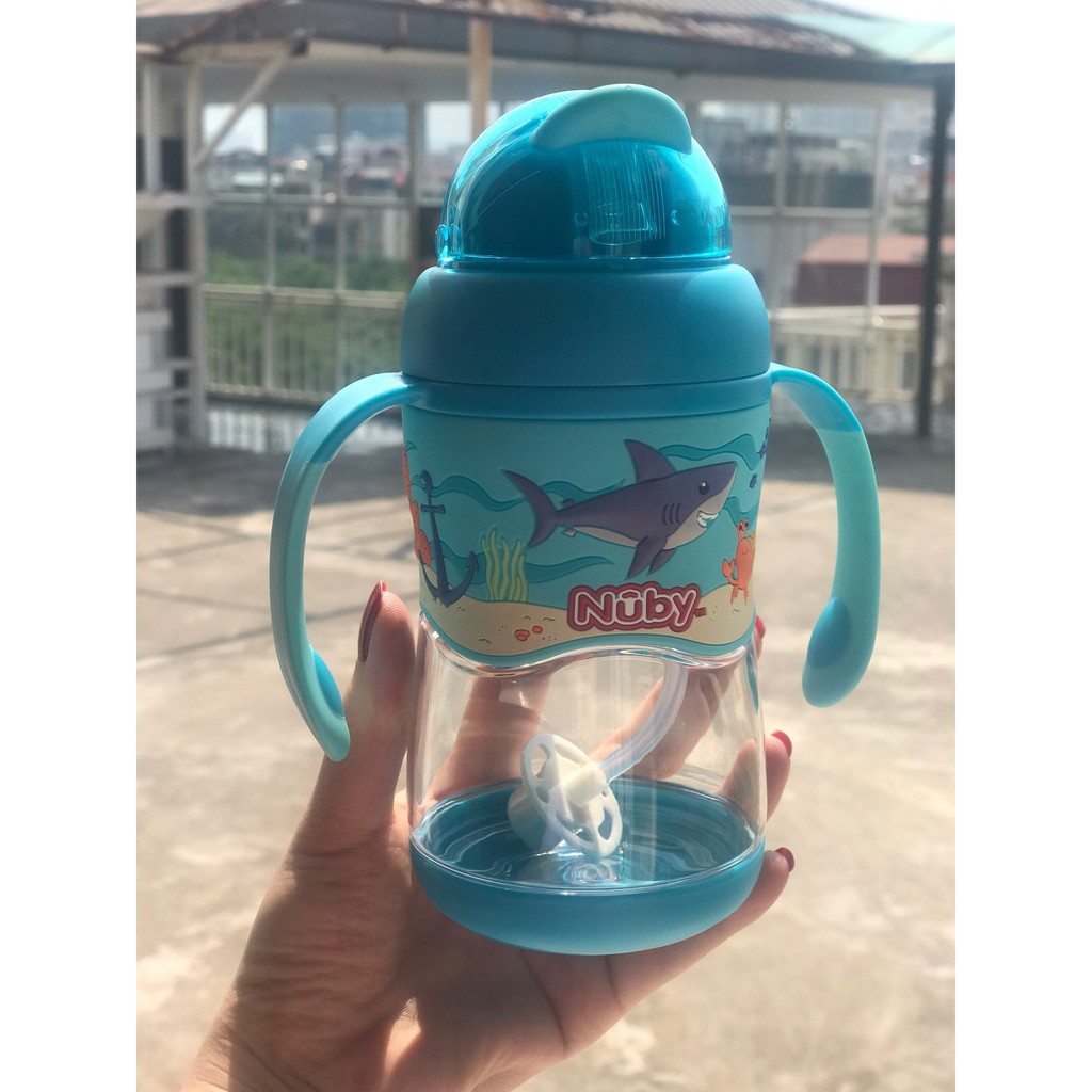 Bình uống nước Nuby ống hút 360 độ 2 tay cầm kèm dây đeo có dung tích 400ml.