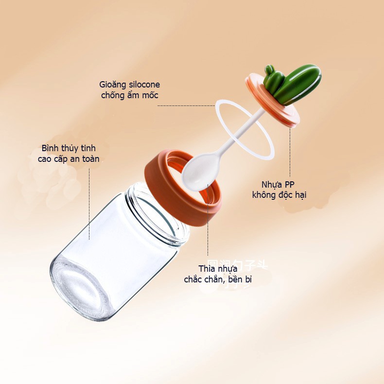 MÔ TẢ SẢN PHẨm: BỘ 4 HŨ GIA VỊ NẮP XƯƠNG RỒNG