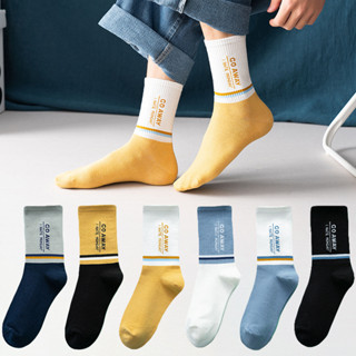 FHYL Đôi Vớ Cotton Thể Thao Cổ Vừa Thấm Hút Mồ Hôi In Chữ Phong Cách Hàn Quốc Cho Nam