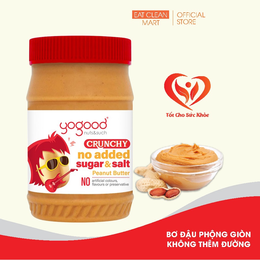 Giới thiệu BƠ ĐẬU PHỘNG GIÒN KHÔNG ĐƯỜNG - Yogood Crunchy Peanut Butter NO ADDED SUGAR - Hộp 453g