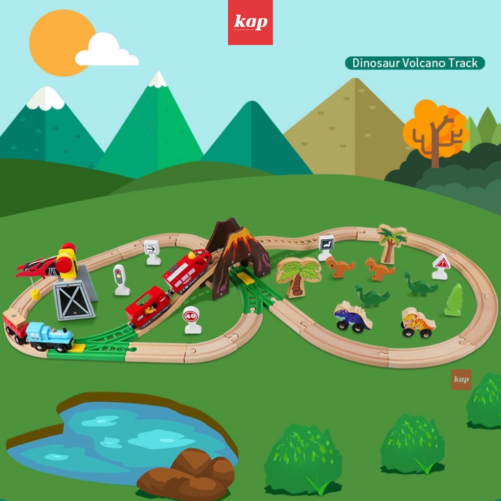 BỘ ĐỒ CHƠI ĐƯỜNG RAY XE LỬA GỖ - CÔNG VIÊN KHỦNG LONG - TƯƠNG THÍCH BRIO, HAPE, LIDL, IKEA