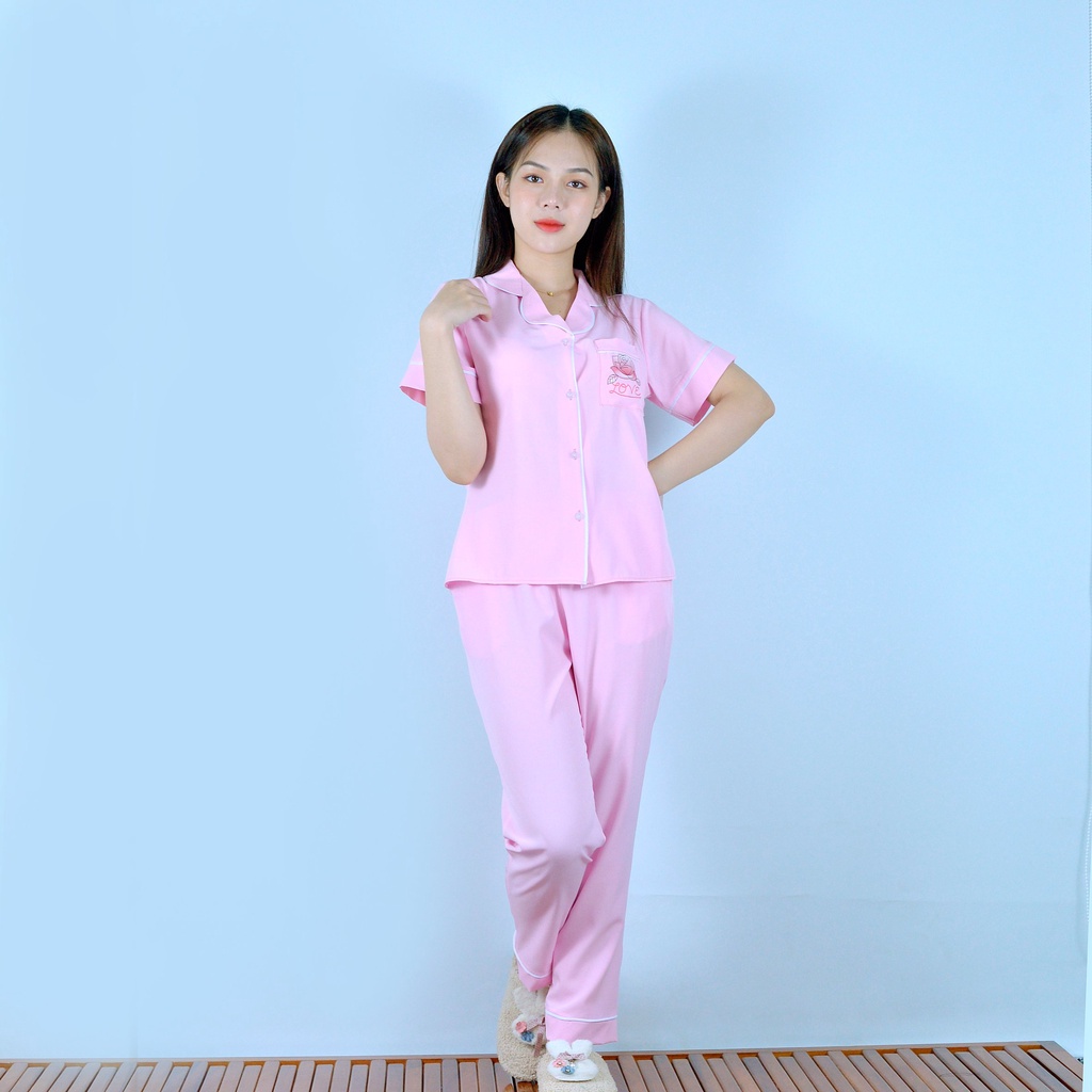 Bộ đồ bộ Pijama màu HỒNG PHẤN tay ngắn quần dài vải cao cấp - co giãn nhẹ - Thoải Mái Nhẹ Nhàng