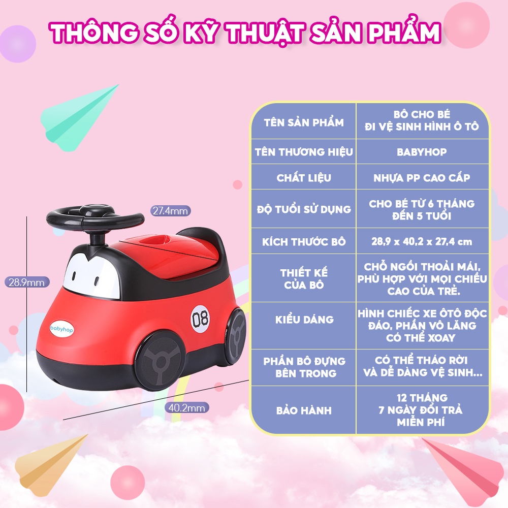 Giới thiệu Bô vệ sinh cho bé MÔ HÌNH Ô TÔ Babyhop phù hợp với bé trai và bé gái 6 tháng đến 5 tuổi đế chống trơn trượt có vô lăng