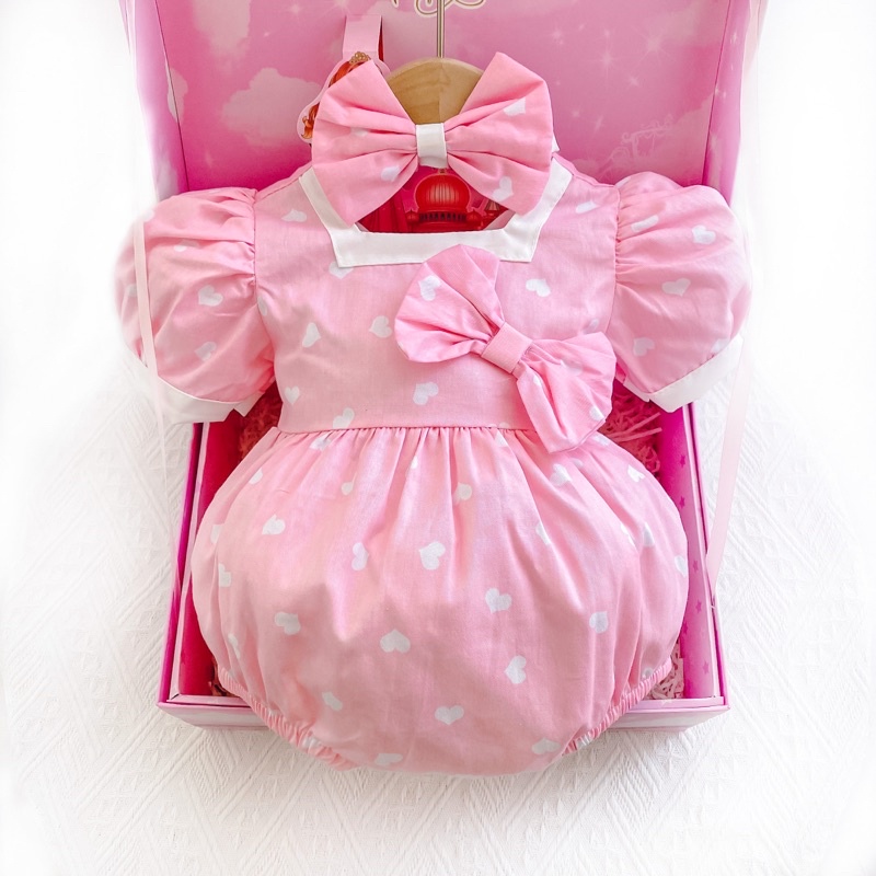 Giới thiệu Body Cho Bé Hồng Chéo Dây Lưng Kèm Turban, Body Cho Bé Sơ Sinh Chất Thô Lụa